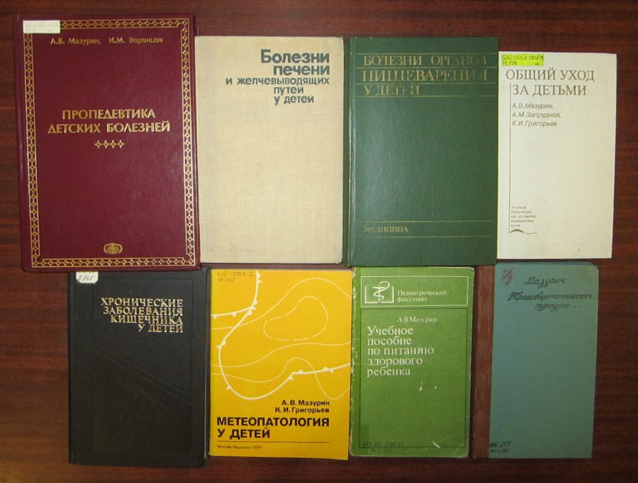 - Заболевания желудка и двенадцатиперстной кишки у детей : методические рекомендации) / М-во здравоохранения СССР, Четвёртое главное управление ; [сост. А. В. Мазурин [и др.]. — М.: Четвертое ГУ Минздрава СССР, 1981.