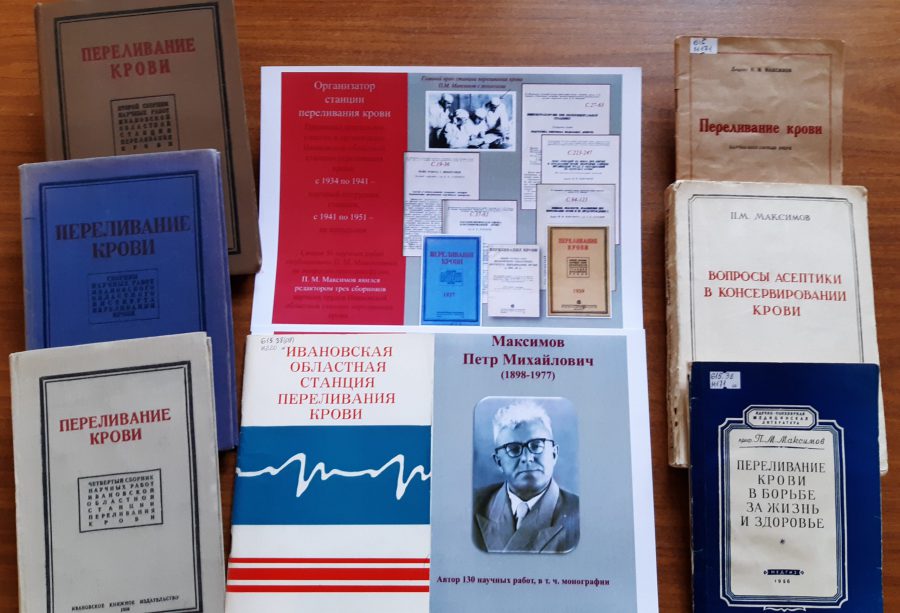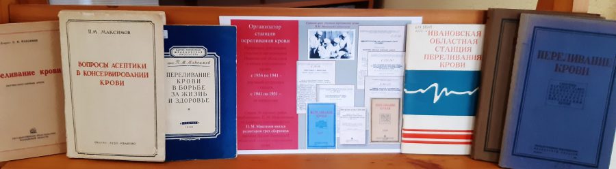 Экспозиция включает уникальные материалы: редкие книги, иллюстрации и пособия по переливанию крови. Среди экспонатов — раритетное издание «Атлас переливания крови», научные труды по физиологии крови, а также монографии П. П. Максимова – одного из организаторов Ивановской областной станции переливания крови.